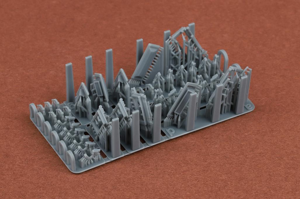 3D printed resin. Comes on printing supports which need to remove. For Dragon kit
